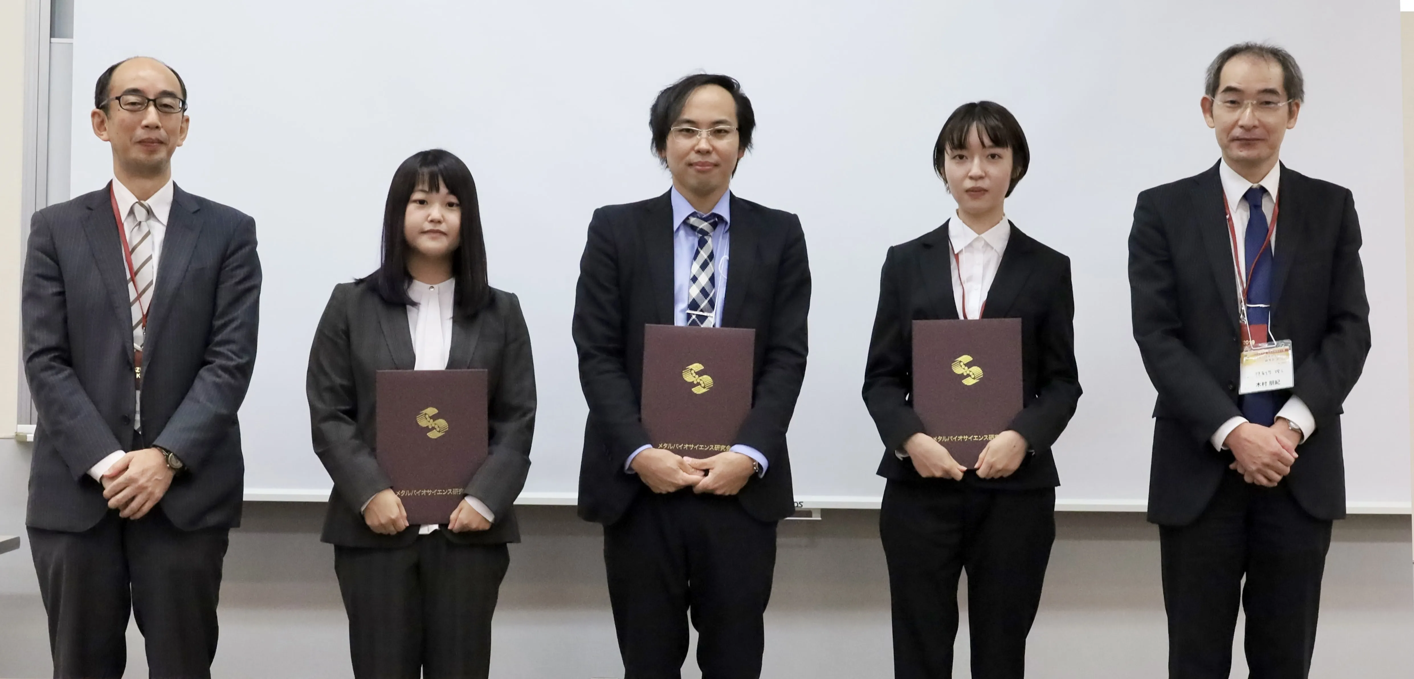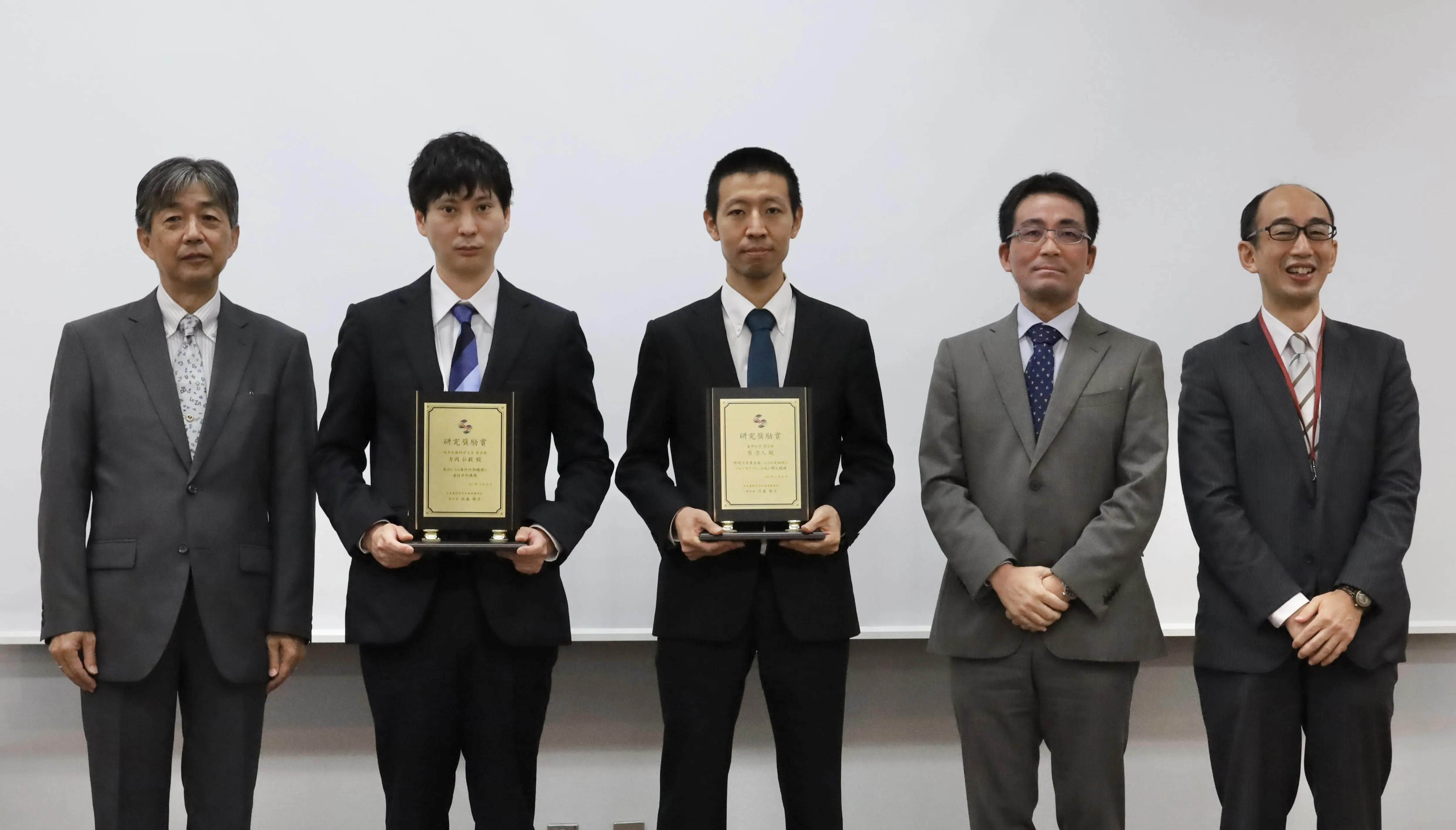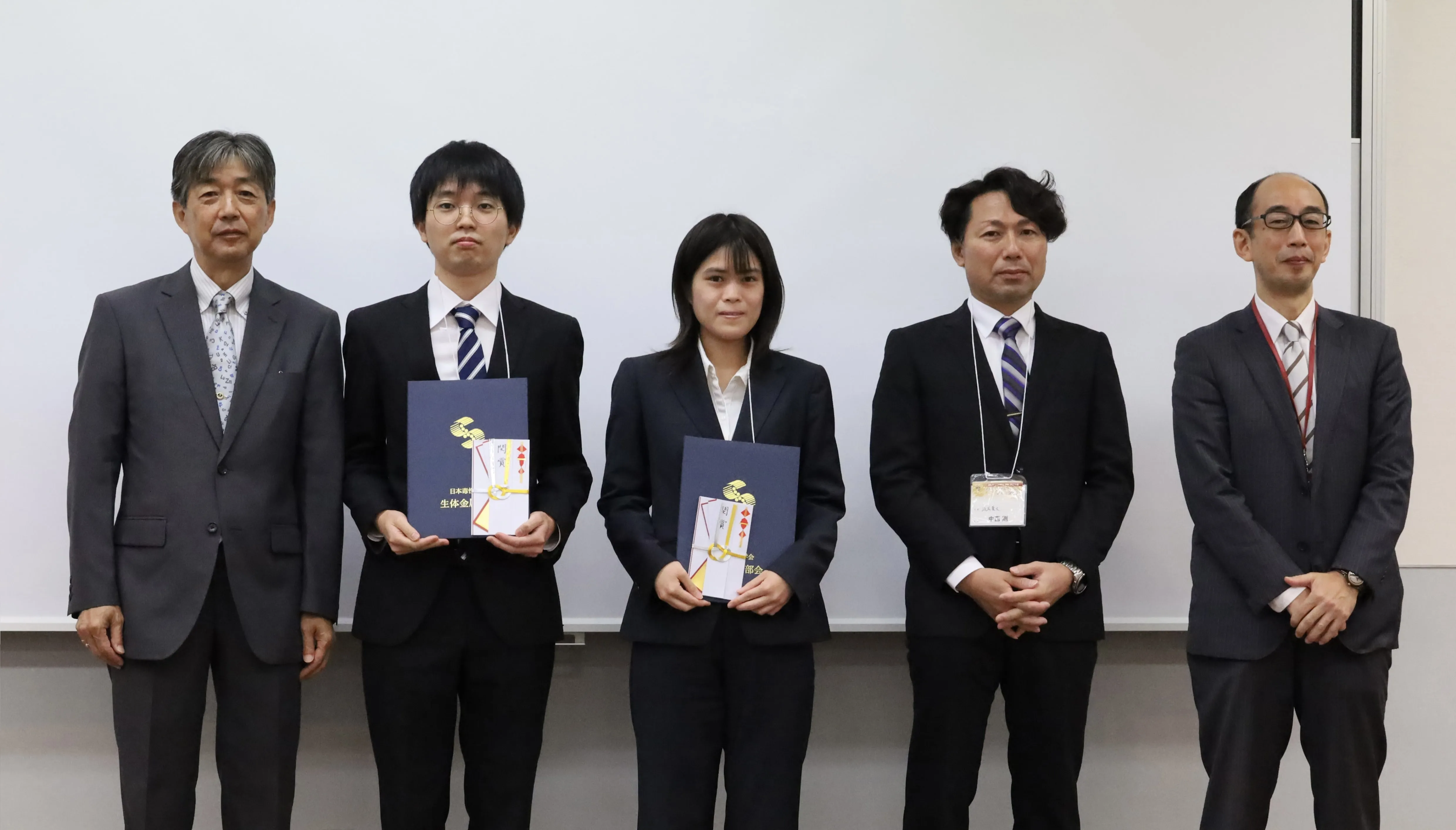 写真左から、佐藤 部会長、市川さん、岩瀨さん、中西 閔賞(若手優秀研究賞)選考委員長、神戸実行委員長。
